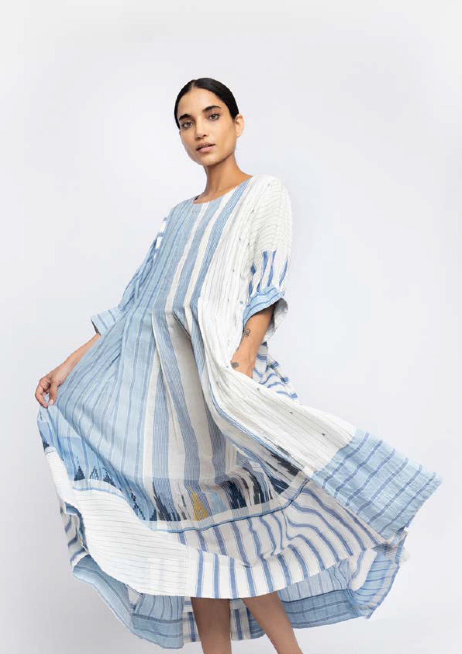 INJIRI Cotton Jamdani Applique Cotton Tunic Dress